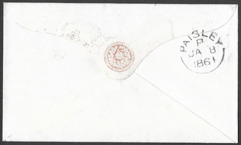 Tied by a fine strike of the Edinburgh Dotted Circle Type A3 for August 19th 1861.