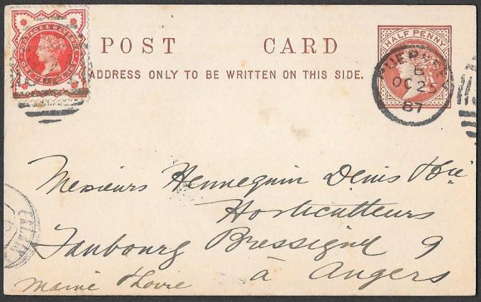 A very fine 1/2d brown postcard from Guernsey to France cancelled by almost only